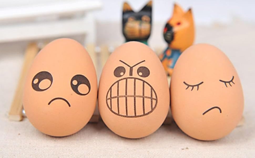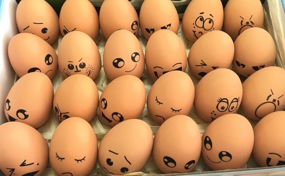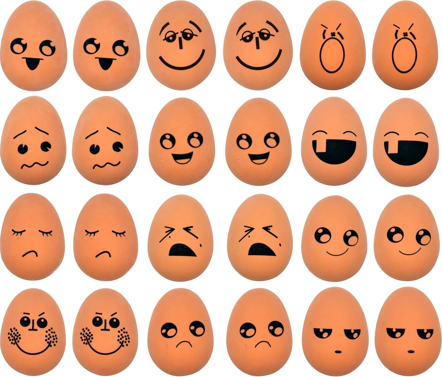 These eggs feature a variety of different emoji faces, which adds to their charm and humor. Each egg has a unique expression that contributes to their overall cuteness and playfulness.