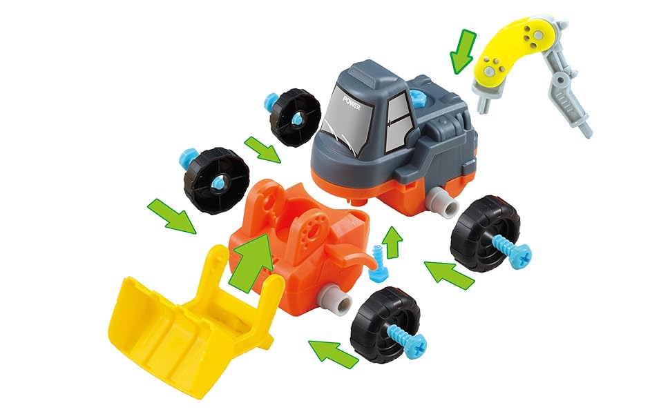 ���♂️Hours of Fun! | This Construction Truck toyset comes with over 27 pieces of modification parts to switch up to 3 vehicle models. This educational set will also provide kids hours of fun learning how to construct different model vehicles such as Bulldozer, Excavator & Roller.