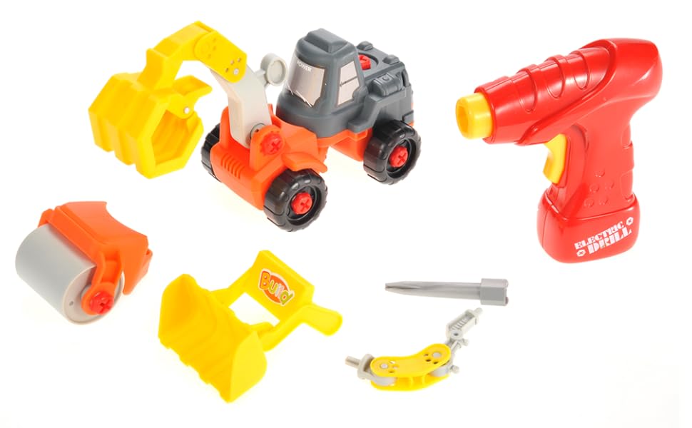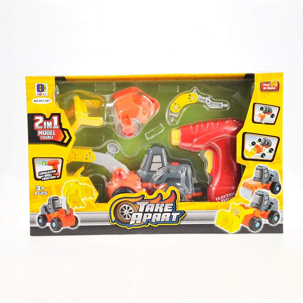 3-in-1 Take Apart Educational Toy Construction Truck with Power Tool | Change to Bulldozer, Excavator, Roller Learning Playset for Kids