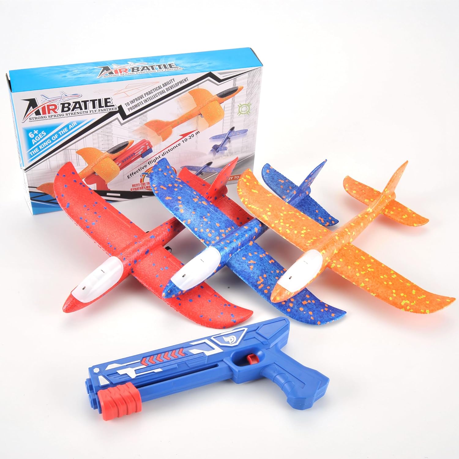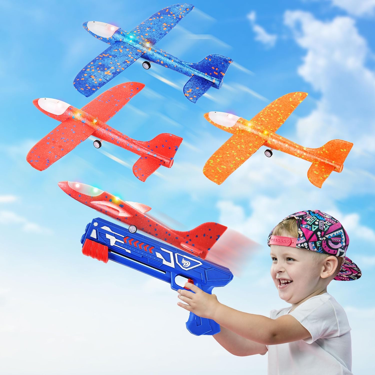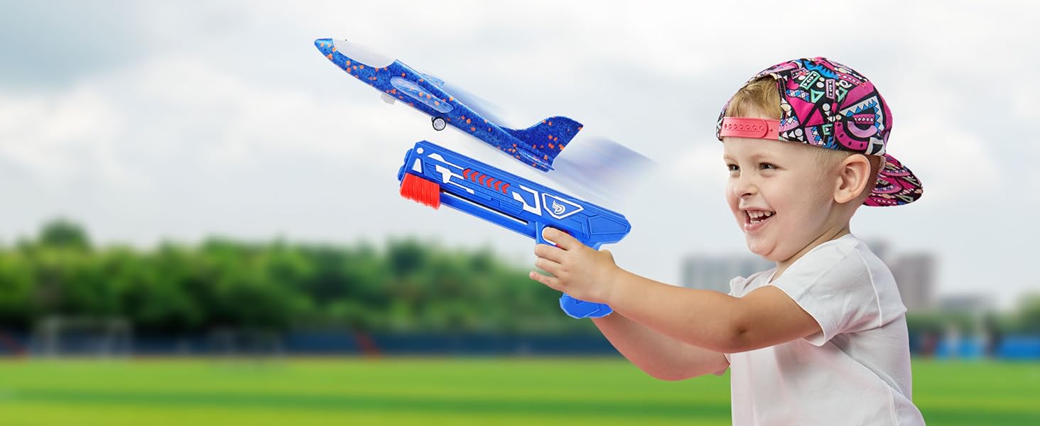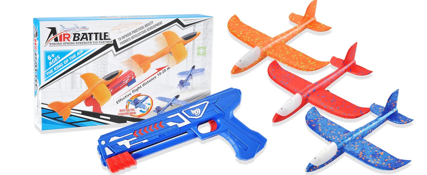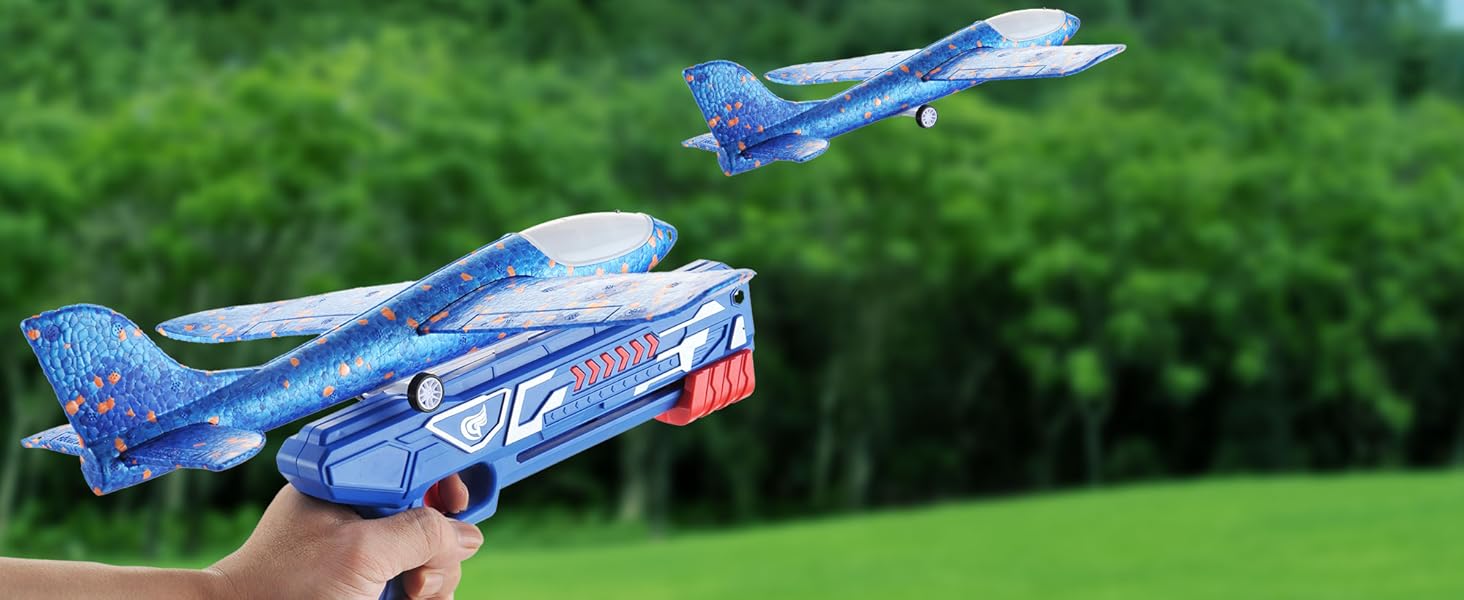 3 Pack Airplane Launcher Toys, 13.8” LED Catapult Foam Glider Plane Toy for Boys, 2 Flight Modes Outdoor Sport Flying Toys for Kids