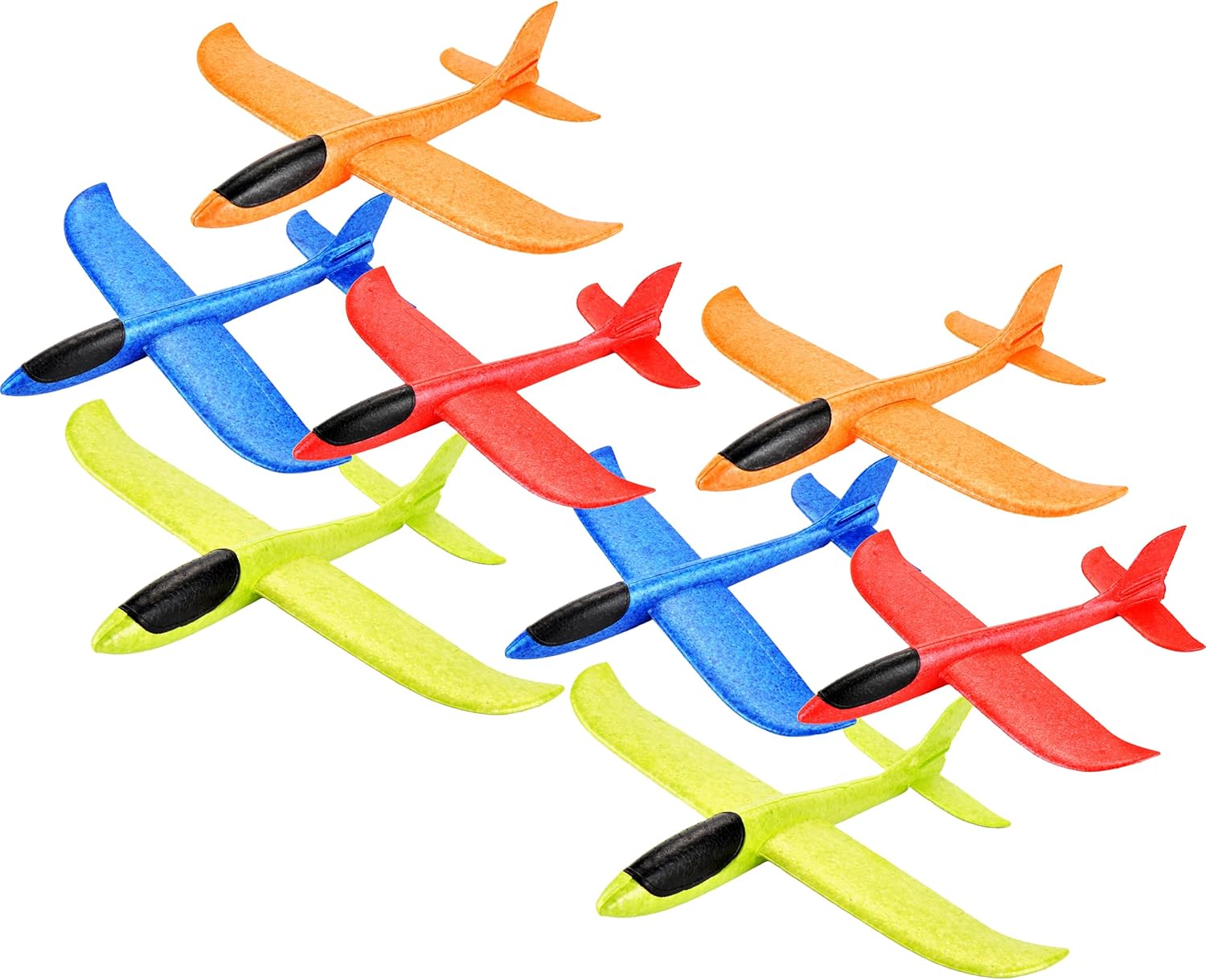 8 Pack Large 17.5” Foam Airplanes for Kids, 2 Flight Modes, Styrofoam Glider Planes, Throwing Flying Foam Airplane, Outdoor Sports Game Toys, Birthday Gifts for Girls 3-12 Years Old Boys