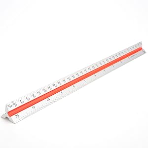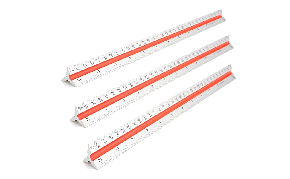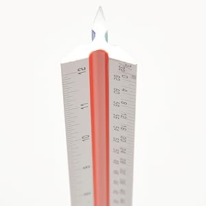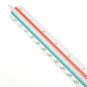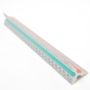 Triangular architect ruler designed to assist the development and measurement of drawings and craft work. Different angles with multiple measurements at once to easily notate between measurements like inches and centimeters. Sturdy and stable for tabletops and vertical up against a wall. Wherever you go this rule will help make that next project that much easier.