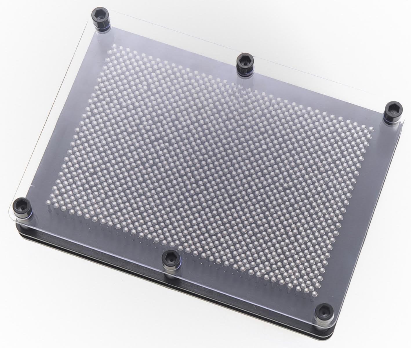 Find any object laying around the house and see what they look like as a 3D pin art. Think of something creative like using a action figure toy to stick on the board. If you're really bored, try to stick your face to it and see how your facial structure looks like through the 3D pins.