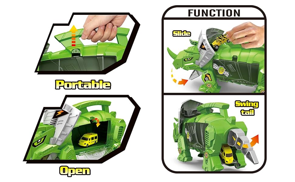 ● Acts as a storage carrier, and you can insert and organize your dinosaurs and vehicles inside