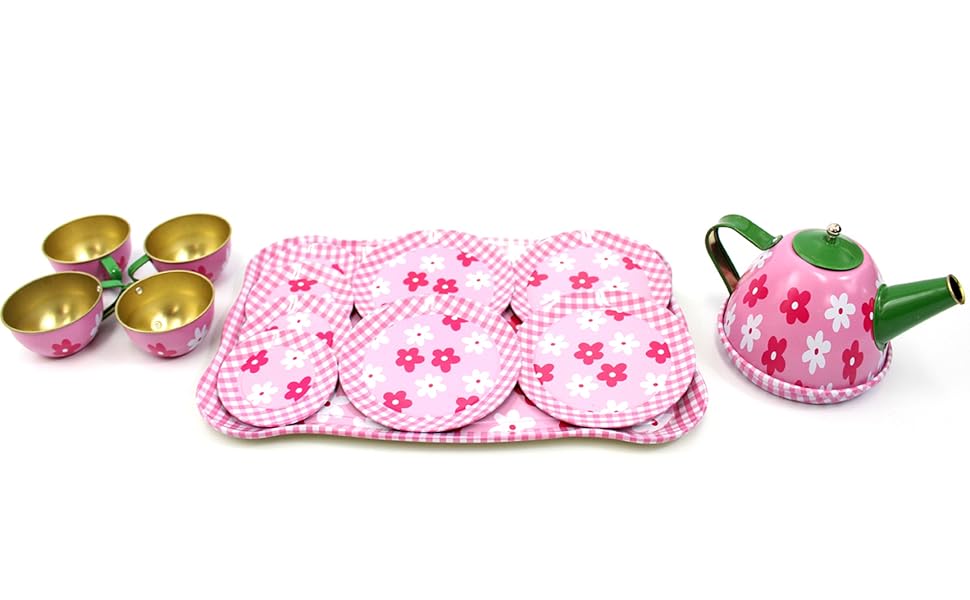 No need to worry about anything breaking. This tea set has been manufactured with premium quality metal. This will keep your little one entertained as this will last through long hours of play time. Touched with a cute flowery design for that perfect tea party your child imagined.