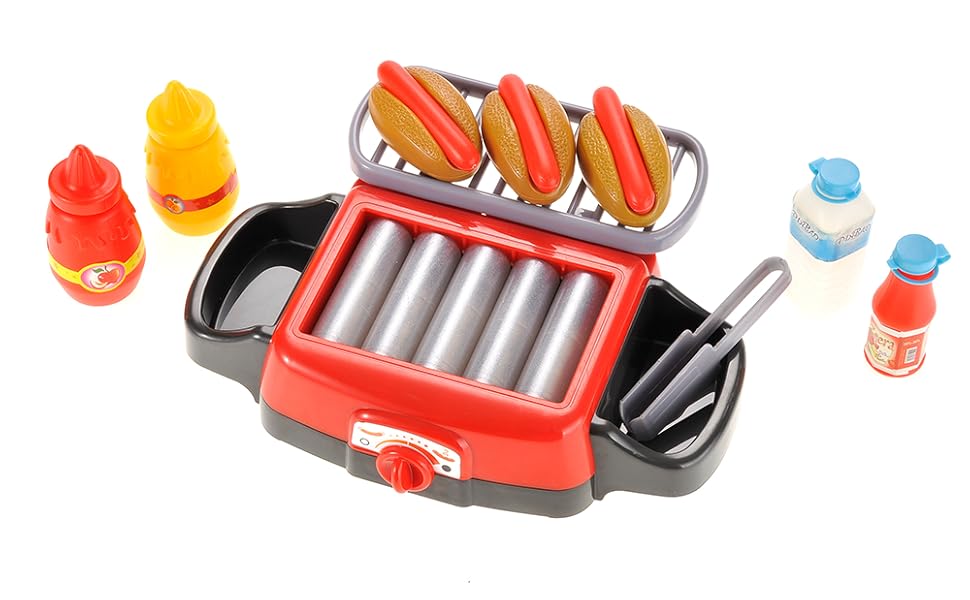 Hot Dog Roller Grill Play Set - Electric Stove Toy with Light & Sound | Pretend Play Kitchen Appliance for Kids | Fun Barbecue Food Toy for Toddlers