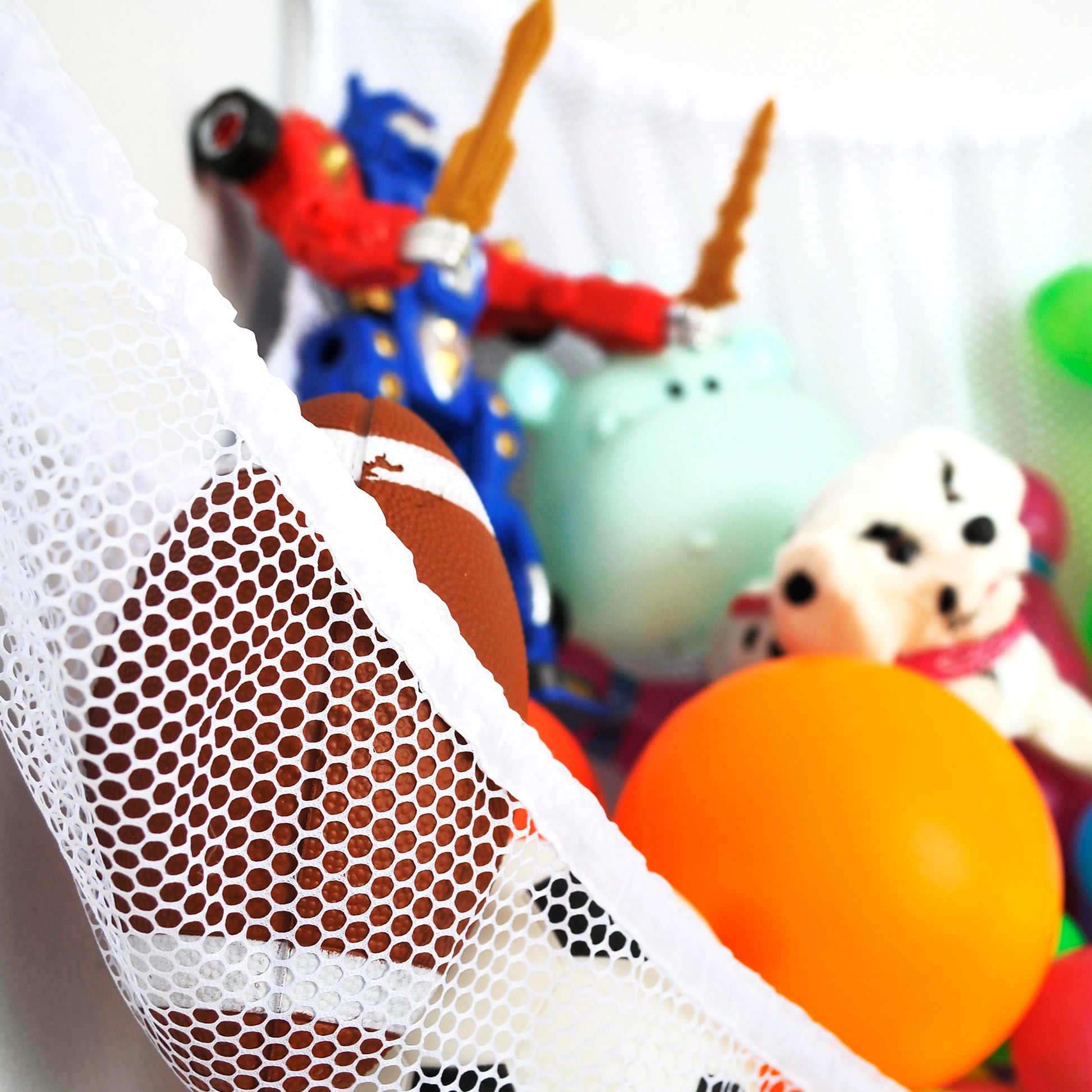 Jumbo toy hammock pack is great way to organize your stuffed animals or toys, also great for decoration as well. Easy to use hammock can help you remove all the mess that's on the floor and make more room. Remove clutter on the floor while organizing toys, also looks great as well. Hammock will attach to any wall surface, accessories needed to attach the hammock is included. Hammock can expand up to 5.5 feet along the wall.