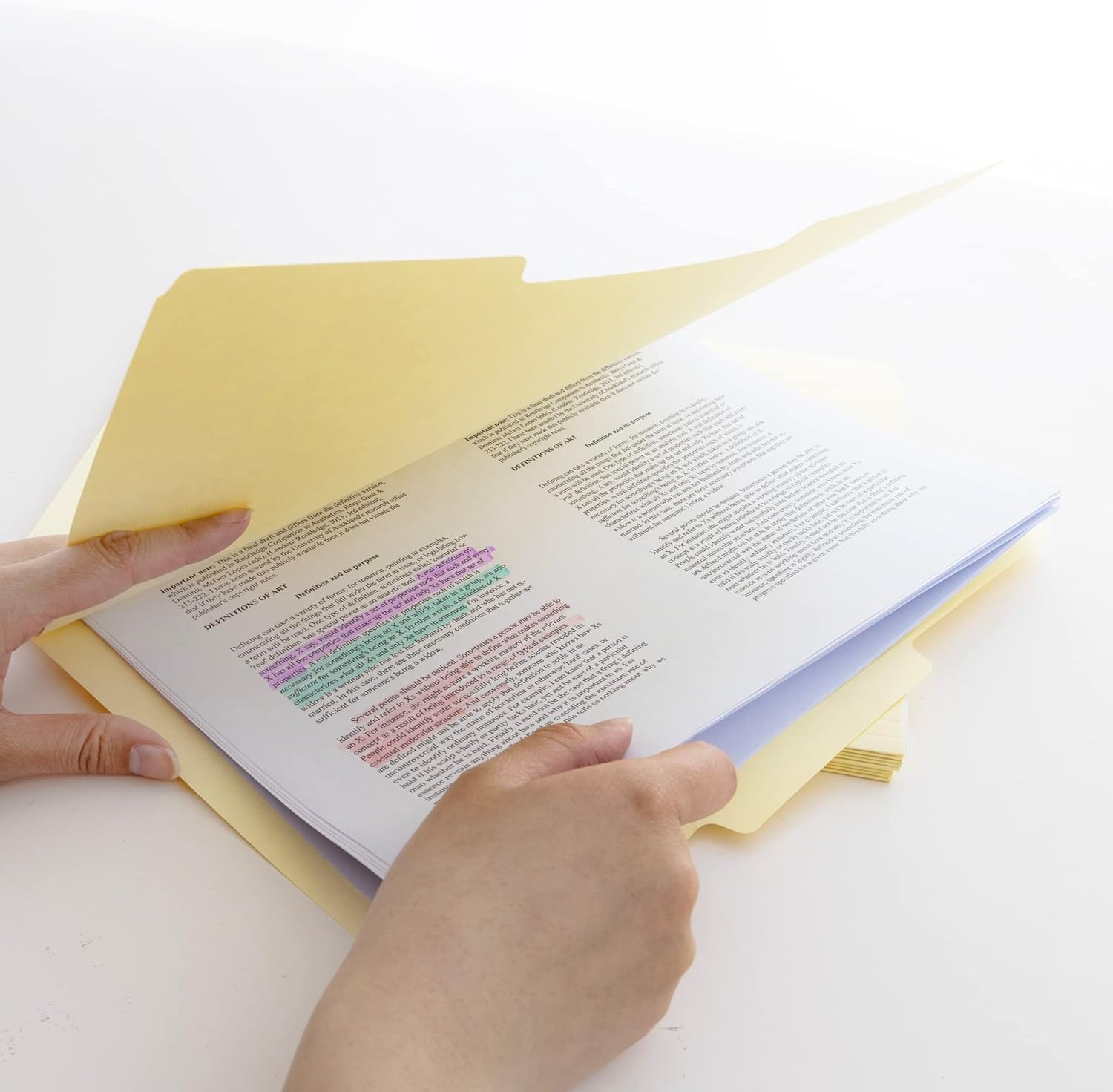 The folders provide 1/3-cut reinforced assorted-position tabs from left to right for perfect visibility in your vertical or lateral file cabinet.