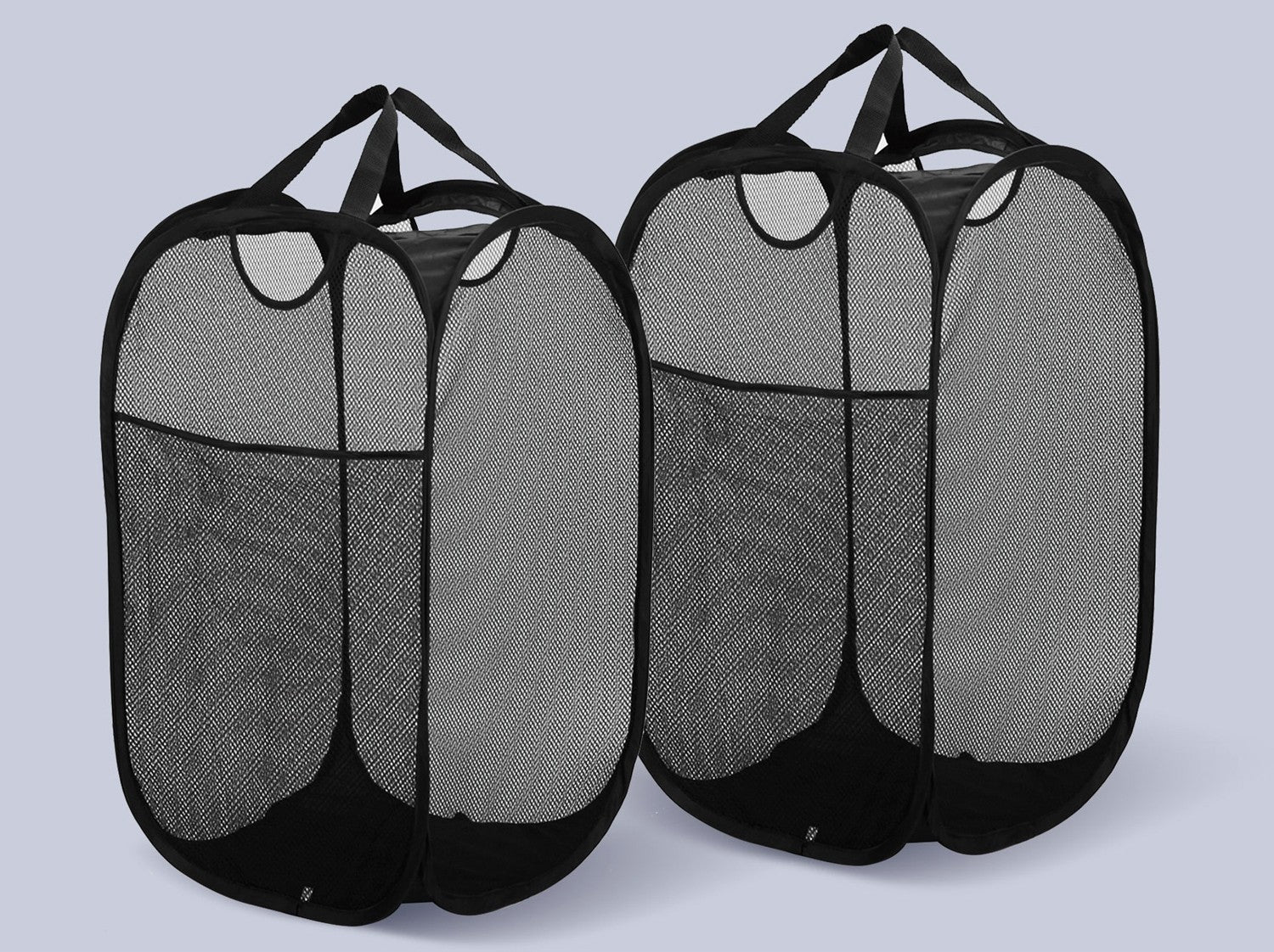 Mesh Pop Up Laundry Basket With Side Pocket (Black)