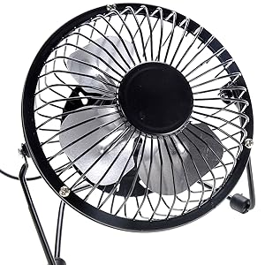 Create a gentle and quiet breeze with this portable black mini USB fan. This is the ultra portable fan that can be placed around the house or at the comfort of your desk for cooling purposes. It's powered using a USB cord and it's built with a sturdy metal to last longer. Remember those dry hot summer days? Say goodbye to it when you are able to create your own cool and comforting breeze almost anywhere.