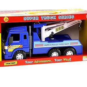 The police tow truck is definitely a great toy for kids who love big trucks or like collecting trucks. The friction powered wheels offers more hours of fun without having to relay on batteries. That's right! No batteries are needed, so just simply pull the vehicle back and watch the truck zoom right pass you! Kids will like the fact that they can use the hooks located on the back and drag toys around using the truck.