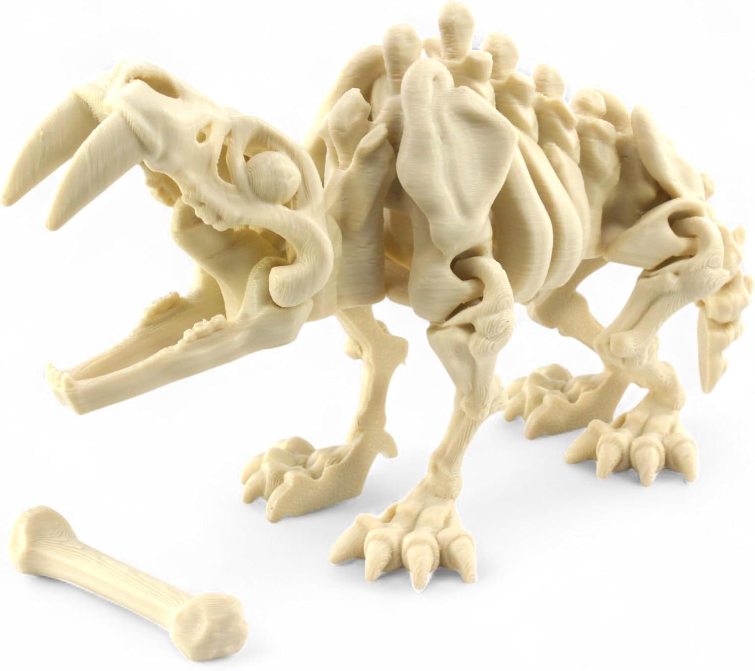 Prehistoric Powerhouse: Bring the Ice Age to life with this articulated Sabertooth Tiger skeleton—a striking tribute to one of the most legendary predators in prehistoric history. This captivating 3D printed figure combines ancient ferocity with modern craftsmanship, making it a must-have collectible for dinosaur lovers, Ice Age enthusiasts, and curious minds alike. With fully articulated joints, you can pose the skeleton in lifelike stances, making it perfect for interactive play, educational setups, or dynamic display on a desk or shelf. Expertly crafted using high-quality PLA filament and cutting-edge 3D printing technology, this Sabertooth Tiger skeleton features intricate bone detailing and smooth articulation. Every curve, tooth, and joint is printed with precision, offering a realistic skeletal design that blends science with art. Its red gold finish adds a bold, unique flair that makes it stand out among other collectibles, whether you're decorating your workspace, enhancing a classroom, or building a prehistoric display. Built for durability and flexibility, this skeleton is more than just a static model—it also works as a tactile fidget toy, providing satisfying motion and interaction for teens and adults. Whether you're shopping for a unique birthday present, holiday gift, or party favor, this prehistoric predator is sure to impress. Great for collectors, educators, or anyone who appreciates stunning design and the awe of ancient wildlife, the articulated Sabertooth Tiger skeleton is a fierce addition to any collection.