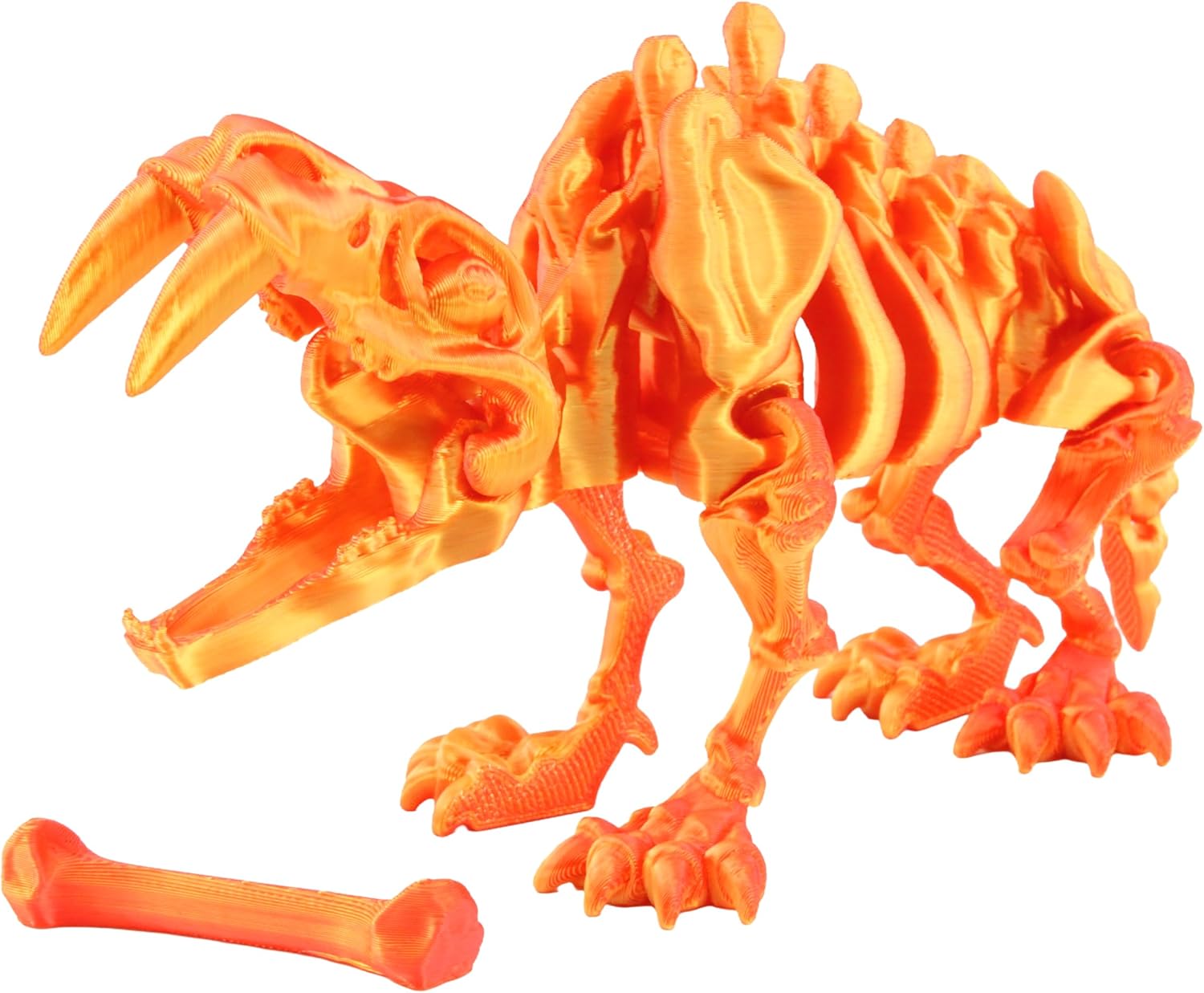 Prehistoric Powerhouse: Bring the Ice Age to life with this articulated Sabertooth Tiger skeleton—a striking tribute to one of the most legendary predators in prehistoric history. This captivating 3D printed figure combines ancient ferocity with modern craftsmanship, making it a must-have collectible for dinosaur lovers, Ice Age enthusiasts, and curious minds alike. With fully articulated joints, you can pose the skeleton in lifelike stances, making it perfect for interactive play, educational setups, or dynamic display on a desk or shelf. Expertly crafted using high-quality PLA filament and cutting-edge 3D printing technology, this Sabertooth Tiger skeleton features intricate bone detailing and smooth articulation. Every curve, tooth, and joint is printed with precision, offering a realistic skeletal design that blends science with art. Its red gold finish adds a bold, unique flair that makes it stand out among other collectibles, whether you're decorating your workspace, enhancing a classroom, or building a prehistoric display. Built for durability and flexibility, this skeleton is more than just a static model—it also works as a tactile fidget toy, providing satisfying motion and interaction for teens and adults. Whether you're shopping for a unique birthday present, holiday gift, or party favor, this prehistoric predator is sure to impress. Great for collectors, educators, or anyone who appreciates stunning design and the awe of ancient wildlife, the articulated Sabertooth Tiger skeleton is a fierce addition to any collection.