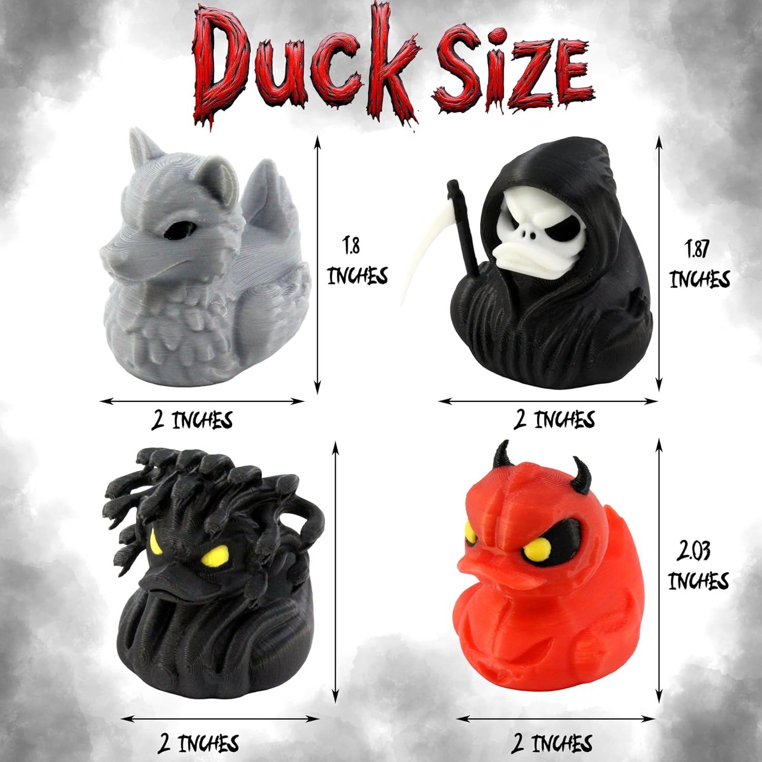 Unique Duck Trio – Includes 4 themed 3D printed ducks: Werewolf, Grim Reaper, Devil and Medusa. Each duck is designed with fun details that make them stand out in any collection.