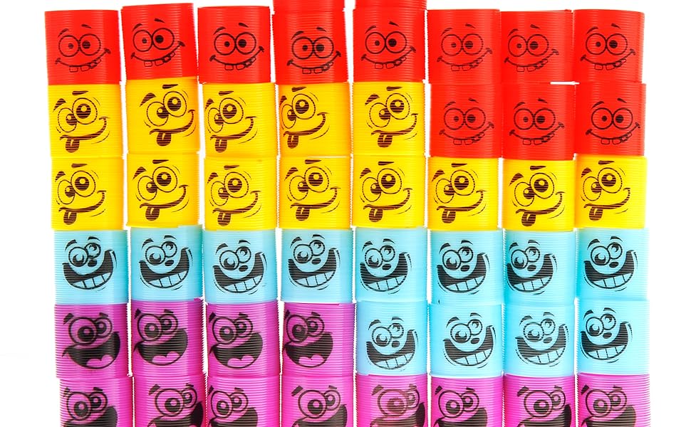PowerTRC 72 Pcs Mini Slinky Party Favors Mini Slinkies Bulk, Emoticon Rainbow Spring Toys Goodie Bag Stuffer, Coil Spring Toy for Carnival Prize Classroom Exchange Gifts