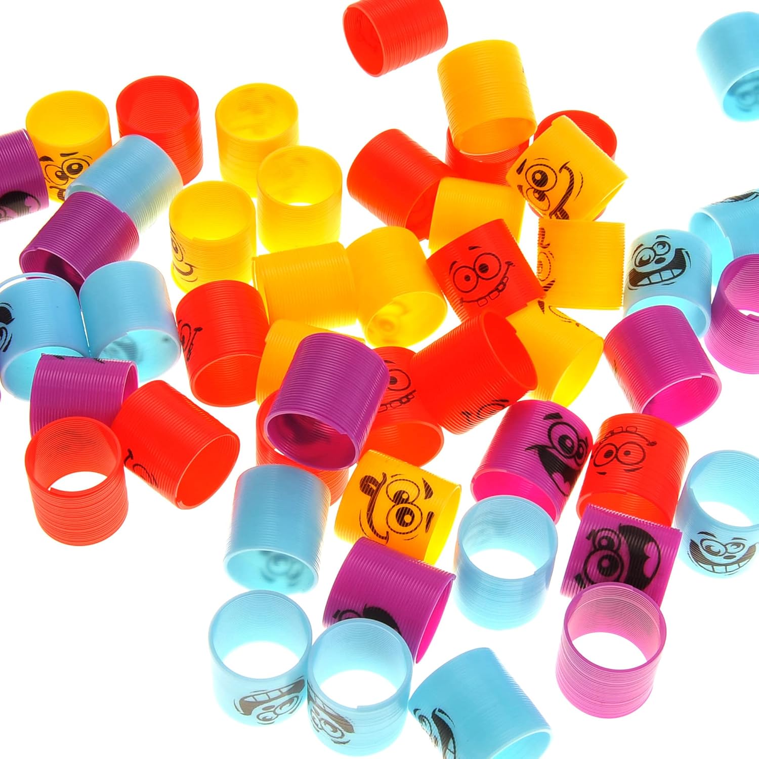 Enjoy the whimsical world of emojis with assorted color coil springs featuring a range of silly and expressive emoji faces.