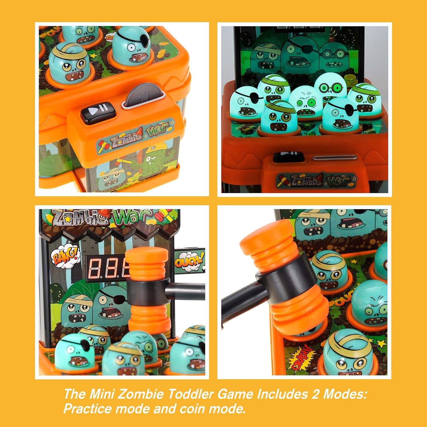 LEARNING TOY : Not only is this zombie arcade pounding game super fun, it will also help your child promote their hand-eye coordination, accuracy, and fine motor skills! Bring out the competitiveness in your child with the scoreboard!