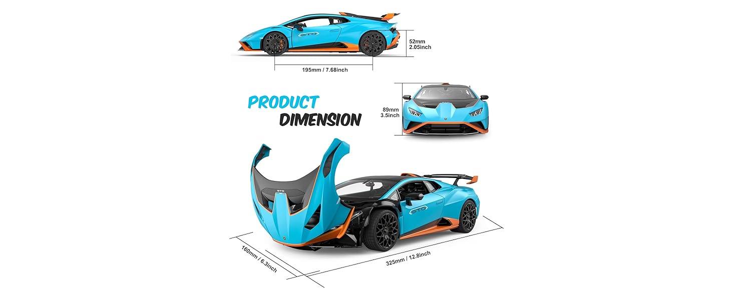 Experience the thrill with the 1:14 scale Lamborghini Huracán STO RC car. At 12.8 x 6.3 x 3.5 inches, it’s perfect for indoor play and a stunning addition to any collection. With rigorous quality testing and authentic details, it offers a realistic driving experience and endless fun.