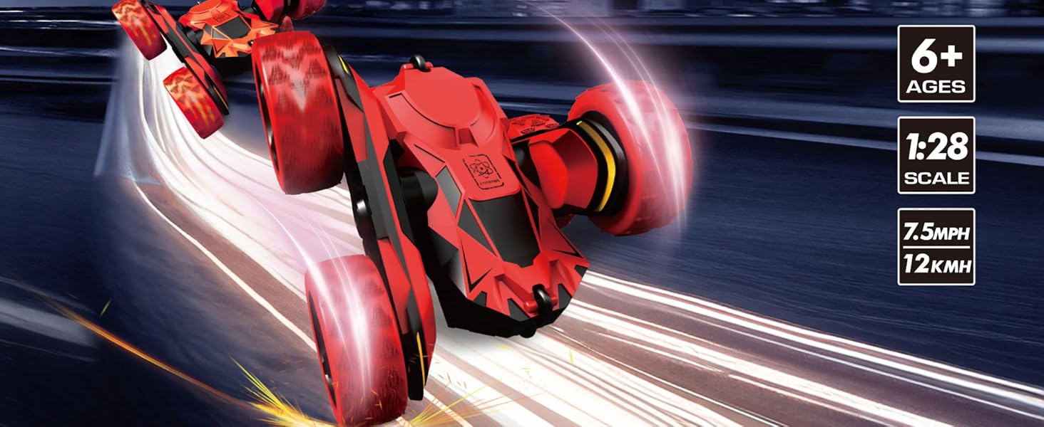 PowerTRC RC Stunt Car Remote Control Car 360° Rotating 4WD Double-Sided Flips Car Toy for Boys Girls Birthday Gift Red