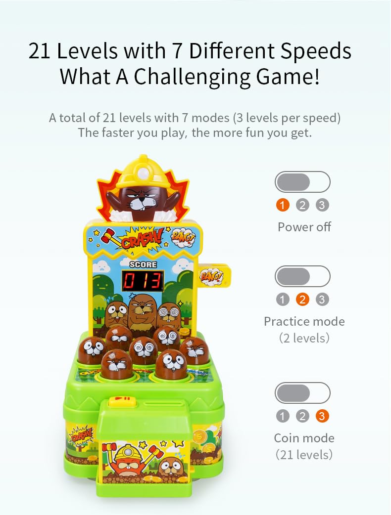 · 【Perfect Gift Idea】: Whether it’s for a birthday, holiday, or any special occasion, the Whack Game Mole makes an excellent gift. It’s sure to bring joy and laughter to any child, creating memorable moments for both kids and parents.