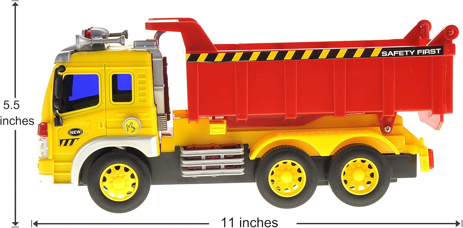 Push & Go Friction Powered Dump Truck Toy with Light and Sound | Realistic Play Tipper Truck Toy Gift for Boys and Girls