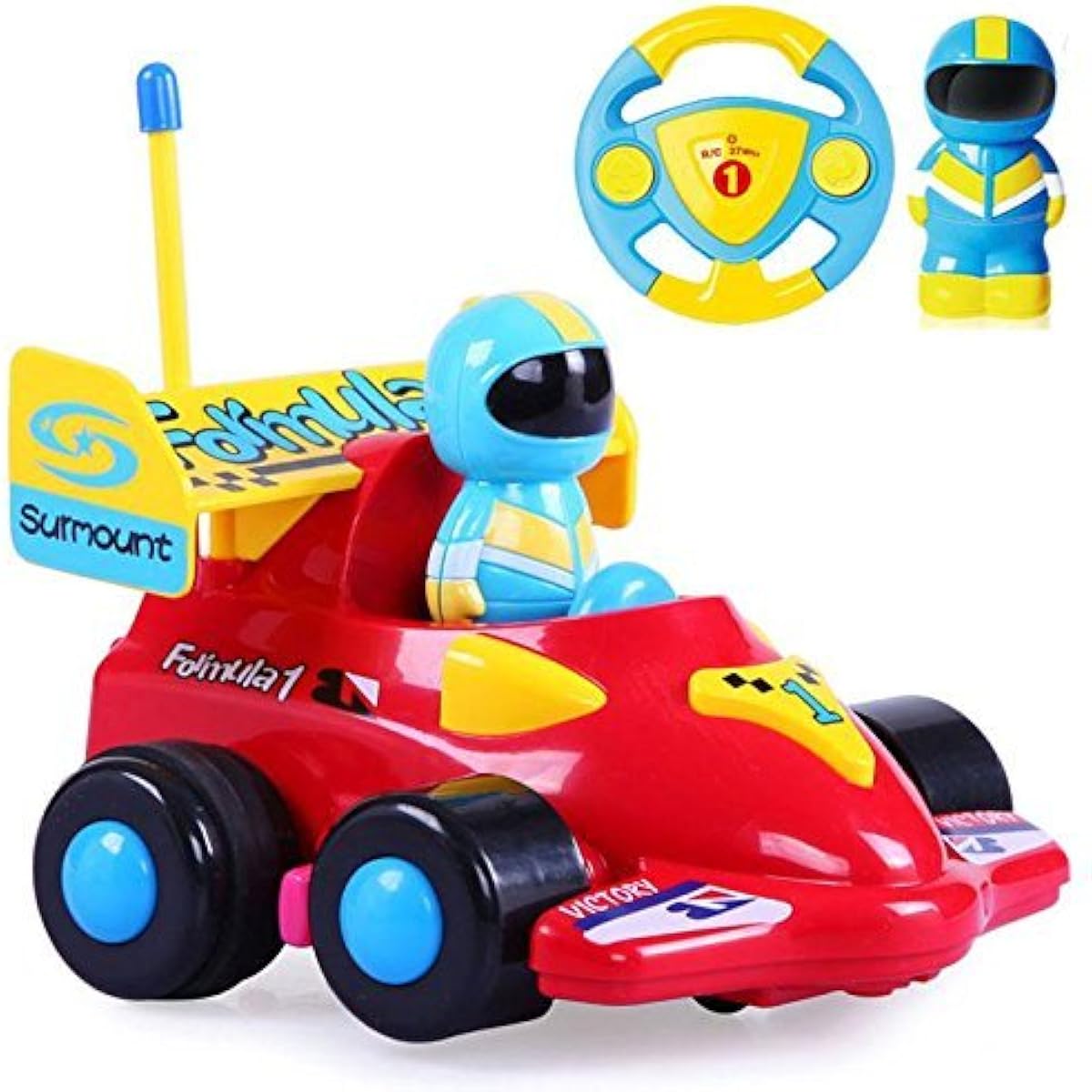 This remote control race car is bright, colorful and perfect for young children learning to play with remote control toys for the first time. It is lightning fast and can drive forward and reverse/left. Press a button and the car will honk and play music while the headlights blink. Comes with a cute removable race car driver figure that kids can place in the car or take out to play with. Cute and stylish, this remote control sports car is a great introduction to remote control toys for young children and toddlers.