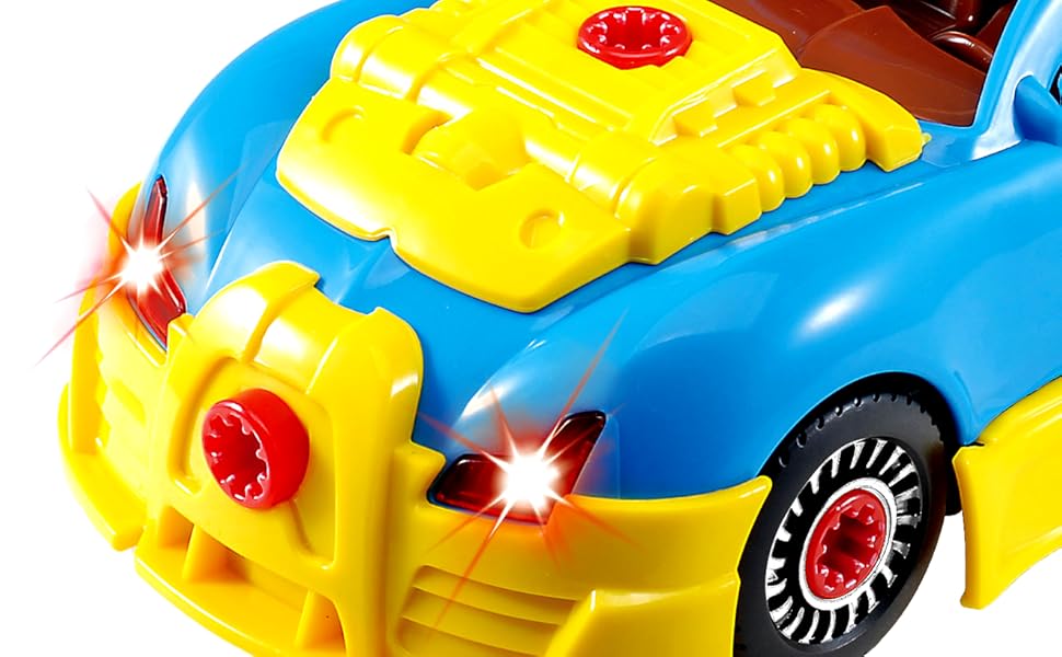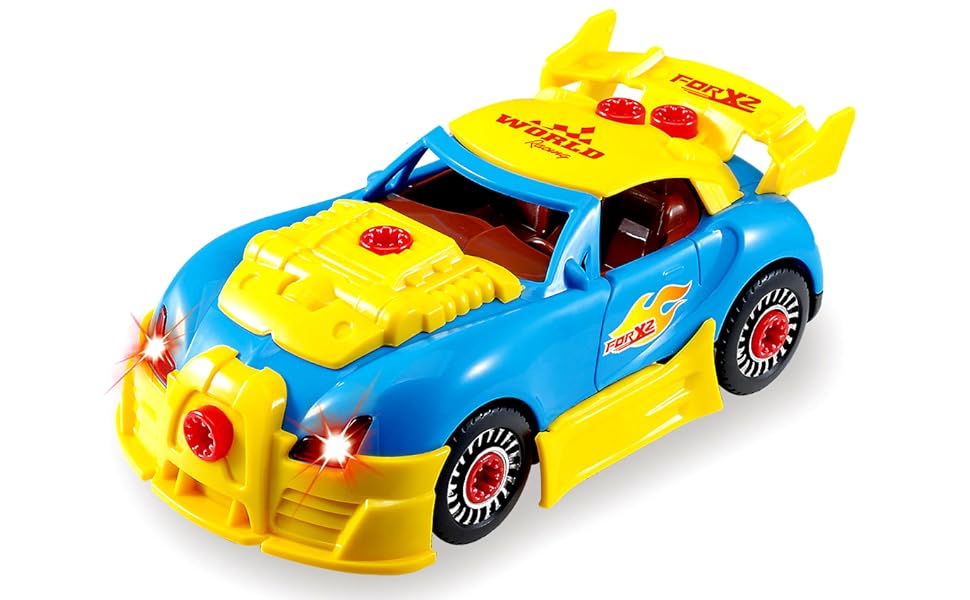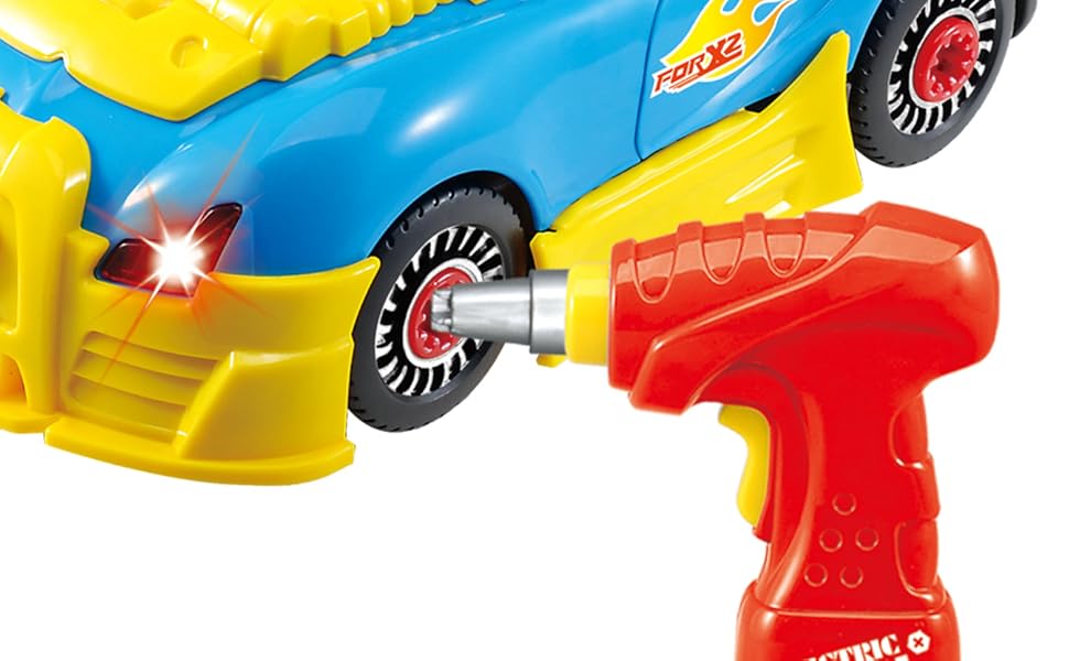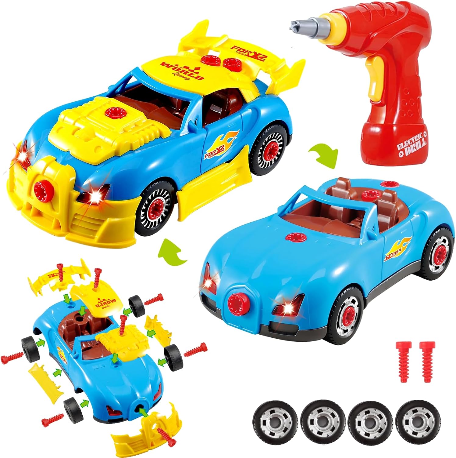 Take Apart Racing Car Toddler Toys Set, 30 Pcs Stem Learning Education Toy Build Your Own Car Construction Set with Drill, Light, Sound