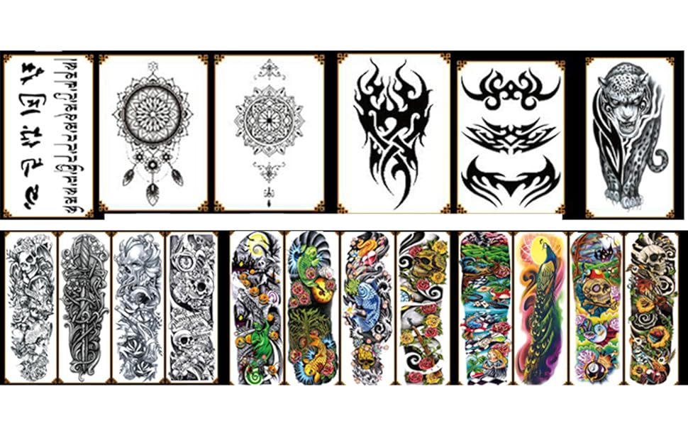 Set: Each set includes 20 sheets of temporary tattoos, featuring both full and half-sleeve designs. This ample quantity provides a variety of options for creative expression and allows you to easily switch up your look for different occasions.